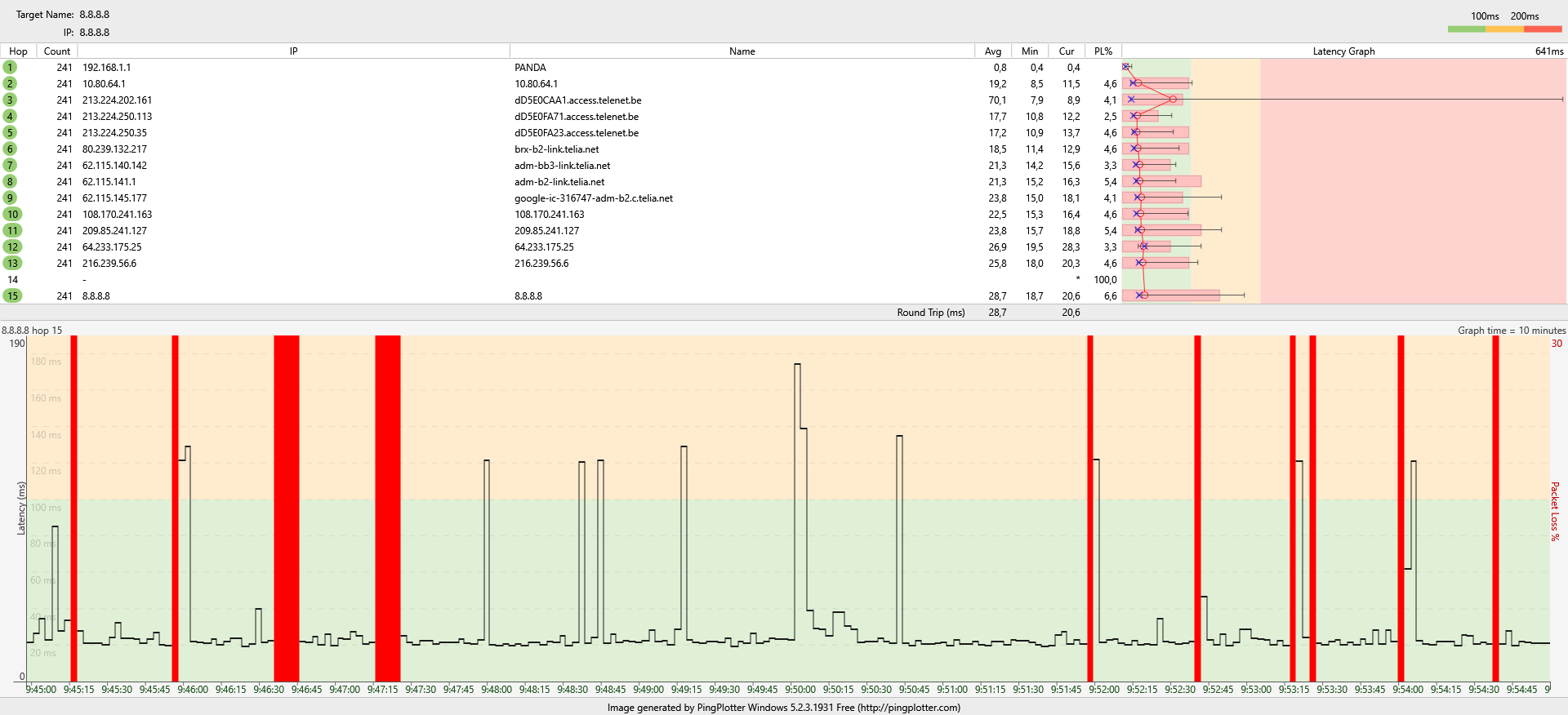 * Pingen naar open dns+google servers = weer packet loss