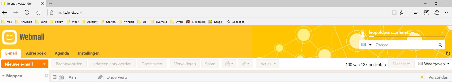 Telenet Webmail Dikke gele titelbalk
