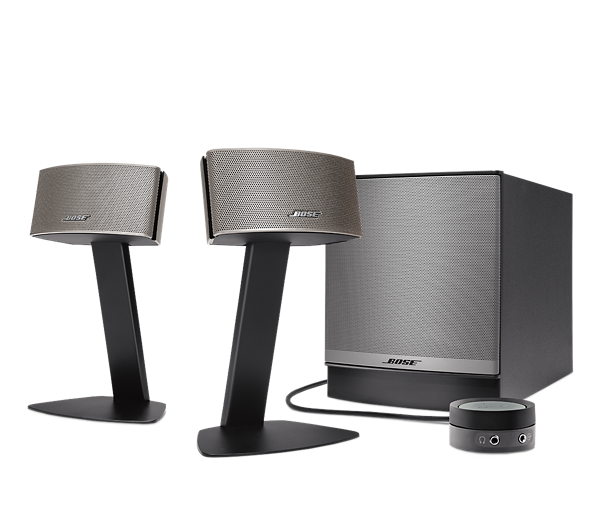 Gezien mijn desk en de PC meer mijn habitat is geworden dan de zetel en de TV, wou ik voor de PC toch wel goede audio. Dus is het de Bose Companion 50 geworden. Tot hiertoe dik tevree :)