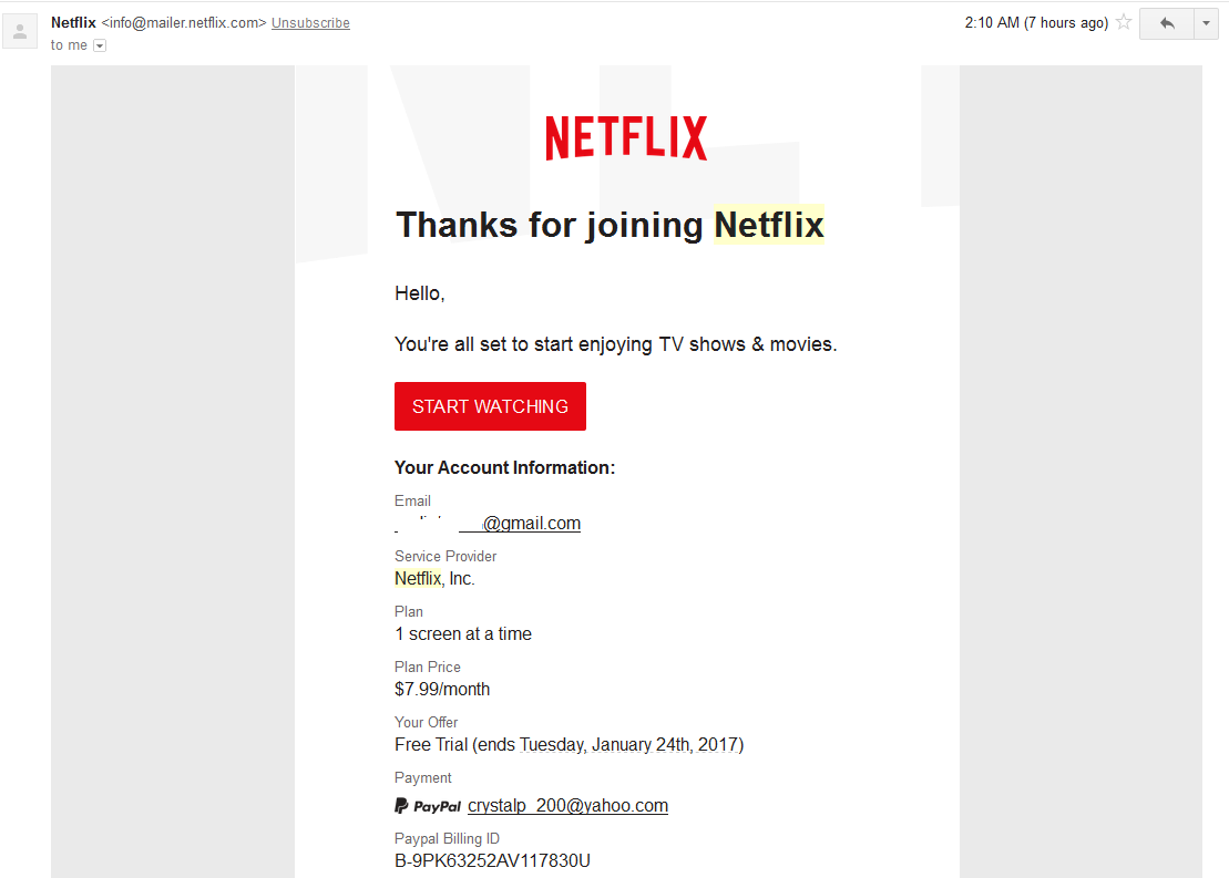 Kreeg net op mijn gmail een bevestiging dat ik zogezegd nieuw lid ben bij Netflix, terwijl ik die dienst nooit heb gebruikt vanaf een gmail account.