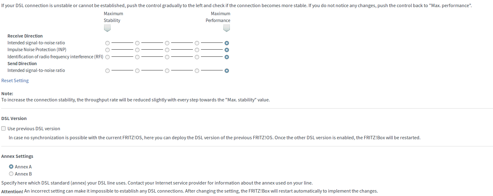 MAAR, je kan het zelf ook tegenhouden door in de Fritzbox de line-settings op Max-stabiliteit te hebben staan, die moeten op Max-performance staan.