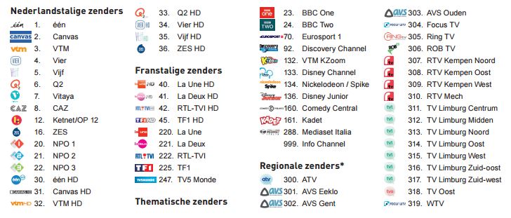 In elk geval moet je een onderscheid maken tussen de provider (Telenet) en de zenders.