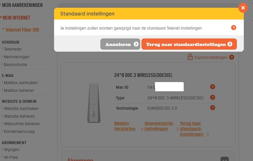 Indien jouw modem "vastloopt" (= bepaalde settings die vanuit Mijn Telenet gepushet worden niet meer aanvaard) is het enige reddingsmiddel een totale reset via de Helpdesk.