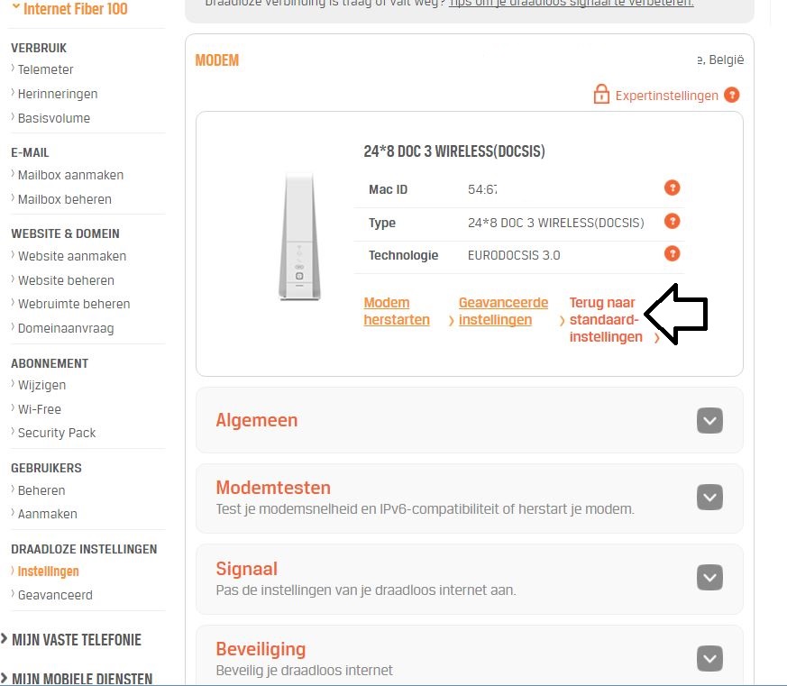 Indien jouw modem "vastloopt" (= bepaalde settings die vanuit Mijn Telenet gepushet worden niet meer aanvaard) is het enige reddingsmiddel een totale reset via de Helpdesk.