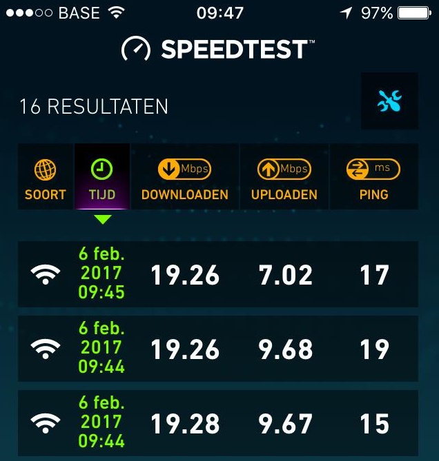 Hieronder staat een beeld van de een test van vandaag 6/2. Deze test is uitgevoerd vlak naast de routers.