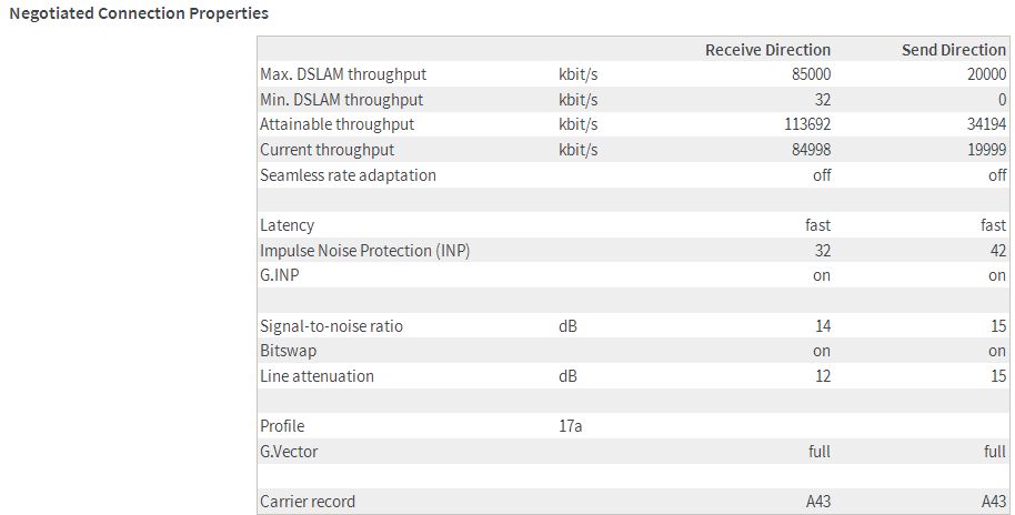 Aan die download gaat niet veel verbeterd kunnen worden. Ik zie wel aan de haalbare upload dat 1,1 MHZ vectoring actief is (is nog niet heel lang geactiveerd). Misschien dat daar in de toekomst nog wel een verassing uit de bus komt.