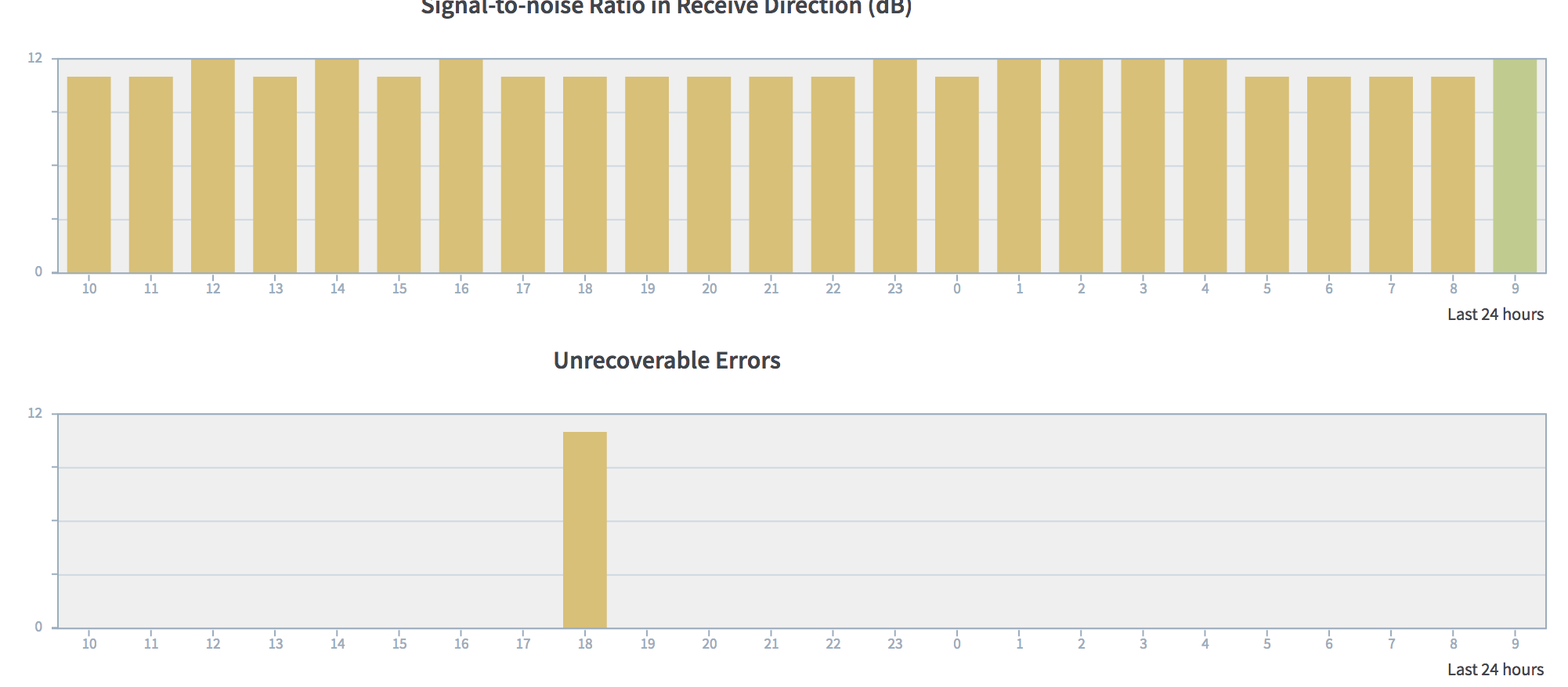 Maar de lijn blijft 100% stabiel: stabiele SNR, geen resyncs, geen fouten.