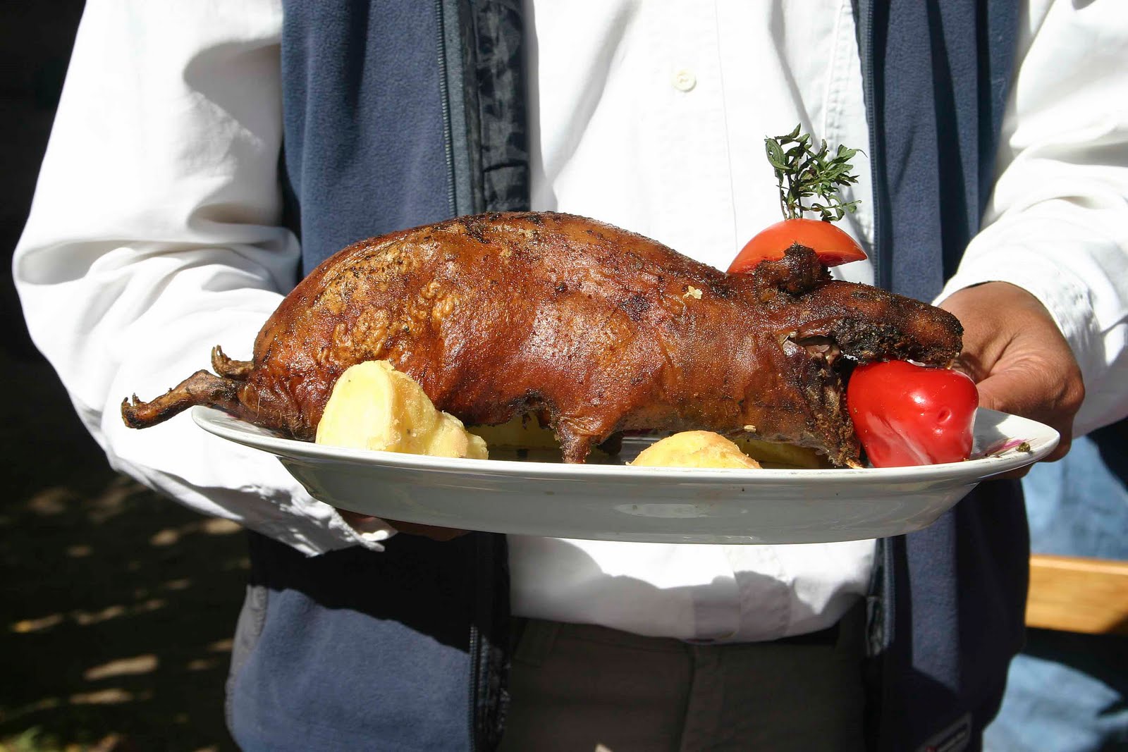 is eetbaar..niet zo veel vlees aan. Beetje tussen kip en varken..