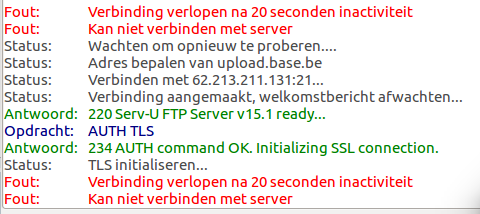 FileZilla geeft het volgende: Via de FZ configuratiewizard ook al eens geprobeerd...actief, passief, steeds een foutmelding