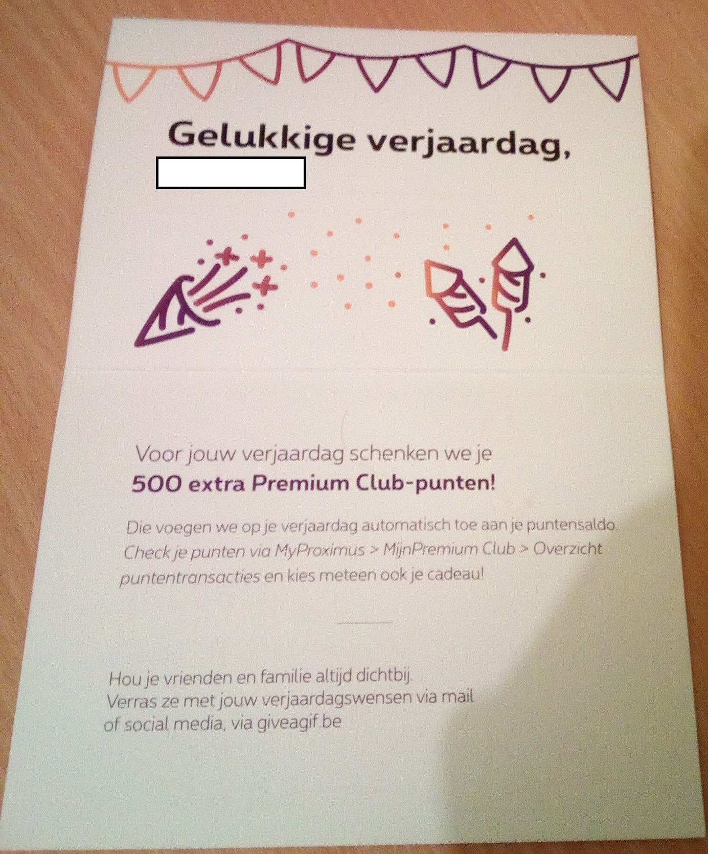 Bedankt Proximus om aan m'n verjaardag te denken, alleen ben ik nu bijna 3 jaar geen klant meer bij Proximus!!!