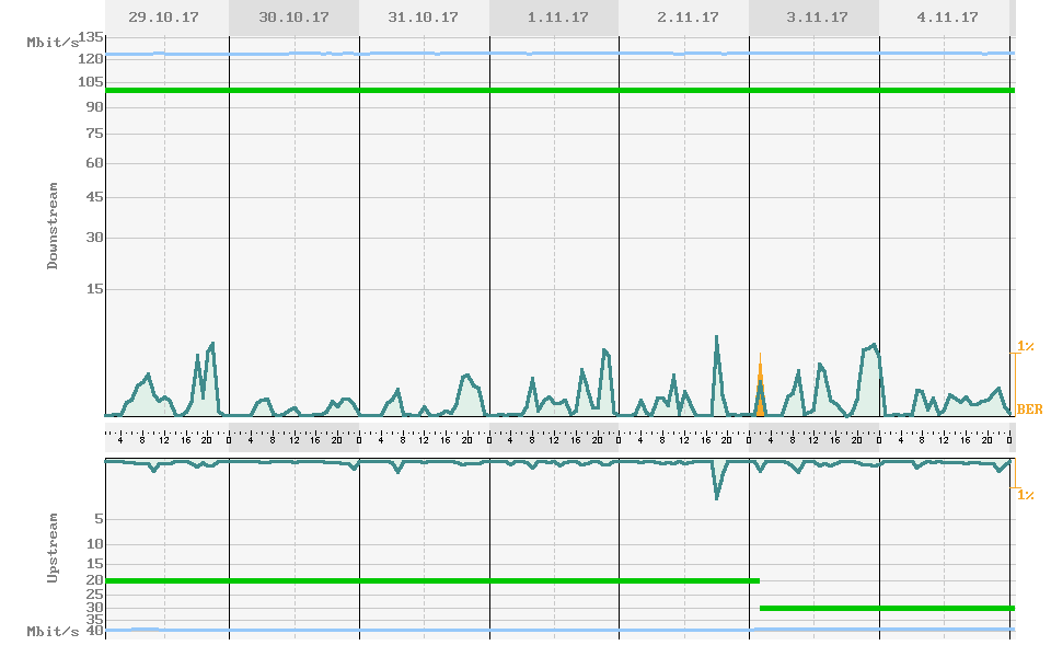 De connectie bleef 20 dagen up met het 100/30 profiel.