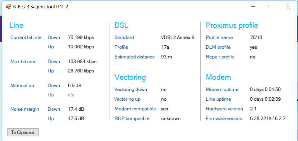 De waarden die je hierboven gedeeld hebt, tonen duidelijk dat je geen vectoring profiel hebt gekregen.