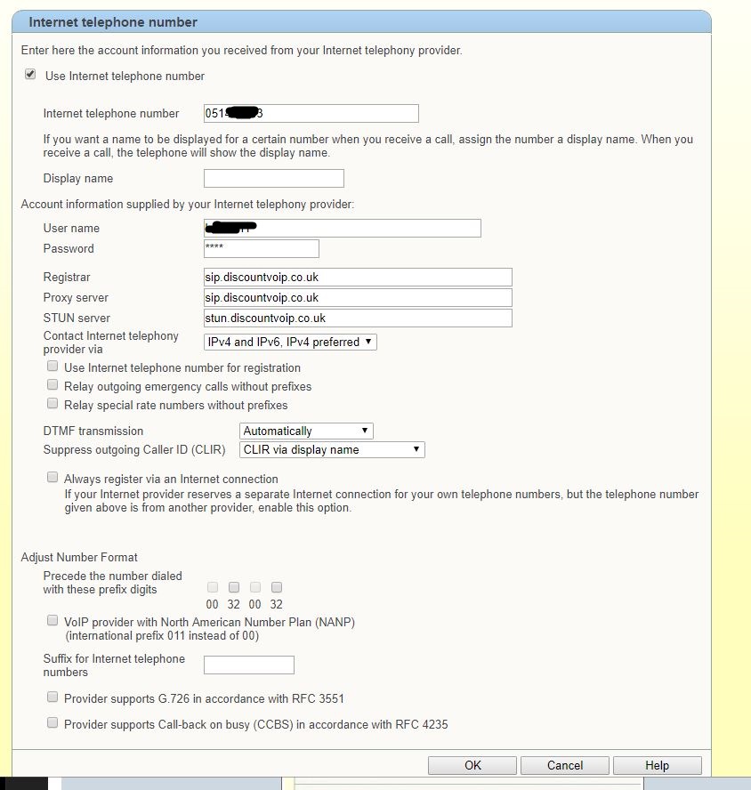 Maar welk nummer je in de FritzBox zet maakt voor de TS absoluut niets uit (hij mag daar ook 1234 schrijven), gezien hij de optie "Use telephone number for registration" niet aanvinkt