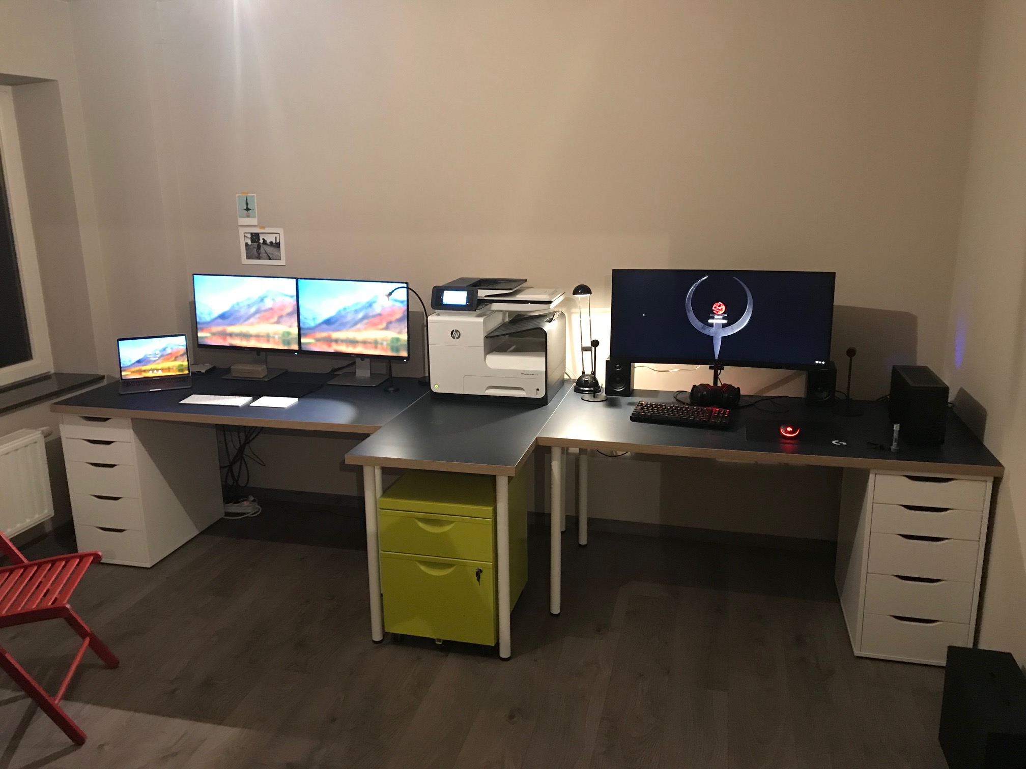 Nieuwe werk/game plek... het zijn maar simpele Ikea tafels, de custom-bureau-offerte van een schrijnwerker in de buurt was met z’n €2000 was wayyyyy te duur...