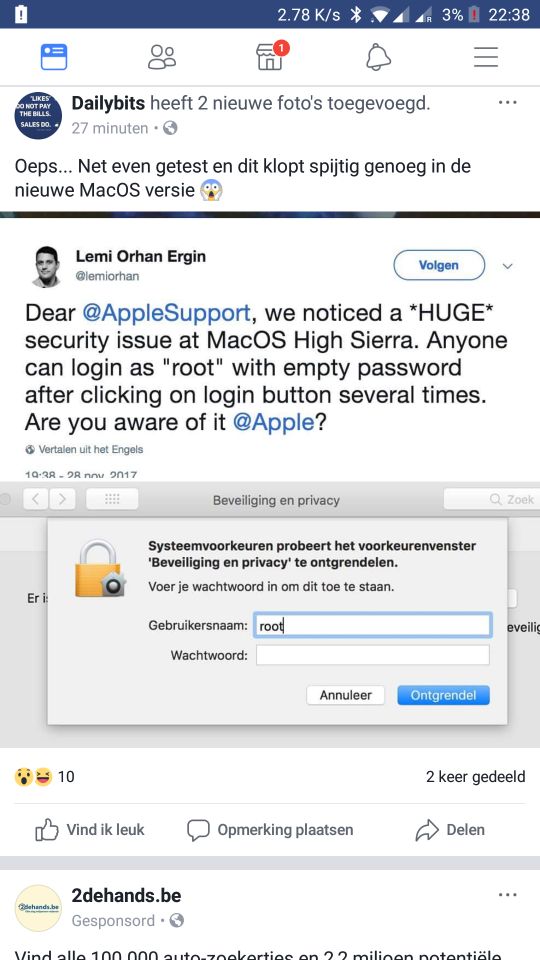 Werkt niet bij mij, blijkbaar omdat ik een password voor root ingesteld heb. Maar goed, iOS != macOS.