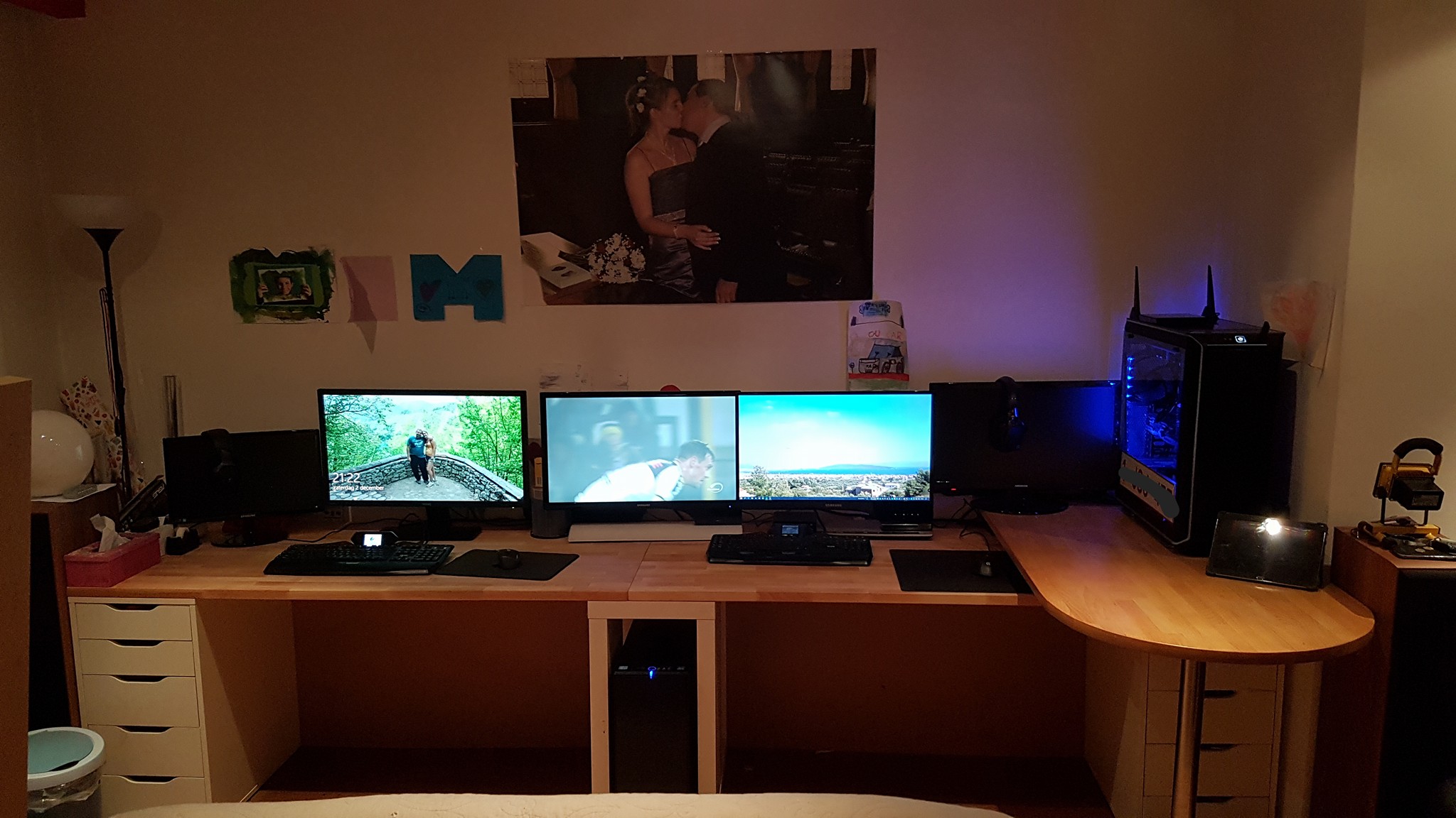 Nieuwe werk/game plek... het zijn maar simpele Ikea tafels, de custom-bureau-offerte van een schrijnwerker in de buurt was met z’n €2000 was wayyyyy te duur...