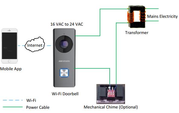 The Wi-fi doorbell is designed to replace traditional doorbells without changing cables by simply replacing the button with the wi-fi doorbell and the bell with another one working on the PSU voltage. Since it is connected on series with the bell it actually get its power through it which means that the bell needs to be electromechanical (with copper coil) and not electronical. If the light are blinking rapidly this means that therelay impedance is too big and there is not enough power going to the wi-fi doorbell. And another thing – when you press the button of the doorbell you actually short circuit the doorbell and give power to the bell, but that button can stay short term pressed and that si why the supported bell are ding/dong type.
