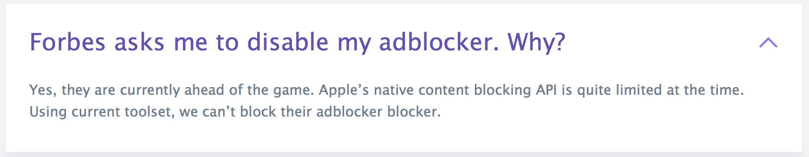 Ah, tiens? Met µBlock Origin geen enkel probleem, hier. Heb wel meer filters aangezet dan enkel de defaults.selder schreef:bye.