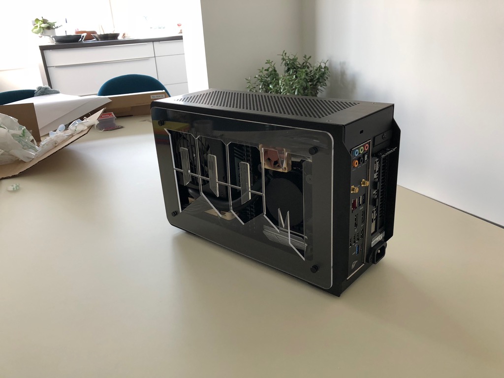Eer het zo ver is, praten we er nog wel eens over ... Een SFF build is niet zoals een normale computer, je moet wat toegevingen doen, zeker over de plaats, de warmte en het geluidsniveau onder load (idle is zo goed als onhoorbaar), maar dat typ ik wel uit als ik hem te koop zet...