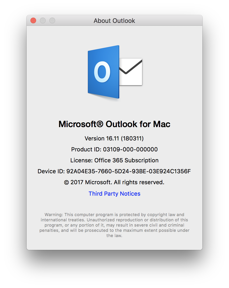 Dit is de meest recente versie van Office 2016 for Mac.