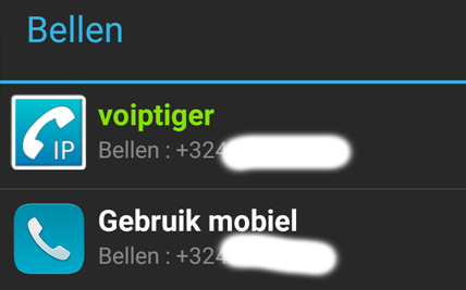kiezen tussen standaard Mobiel of VOIP client op Android