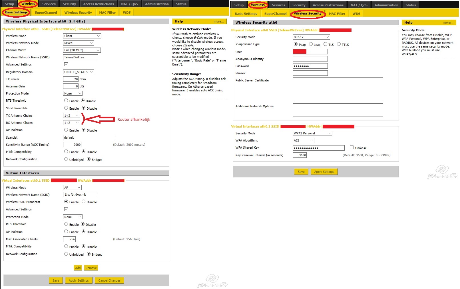 - Wireless adapter als Client zetten voor TelenetWiFree