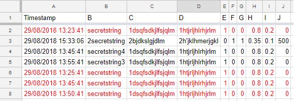Bij het uitvoeren van het script zie die dus dat in kolom B de waarde "secretstring" 4 keer voorkomt. Op heden delete deze nu de rijen 6, 7 en 8 en laat rij 2 staan.