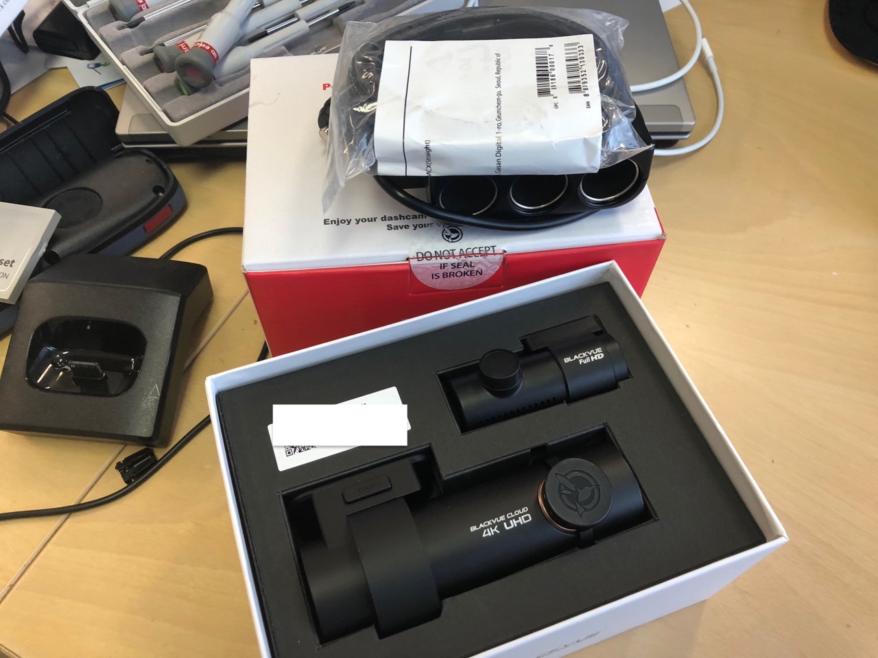Aangezien we straks met de auto op reis gaan een BlackVue DR900S-2CH 4K UHD Cloud Dashcam, samen met een batterypack. Ik heb zo'n dingen graag als apart systeem en geen geneuzel door het op de accu van de auto aan te sluiten door zekeringen te "ontdubbelen"...