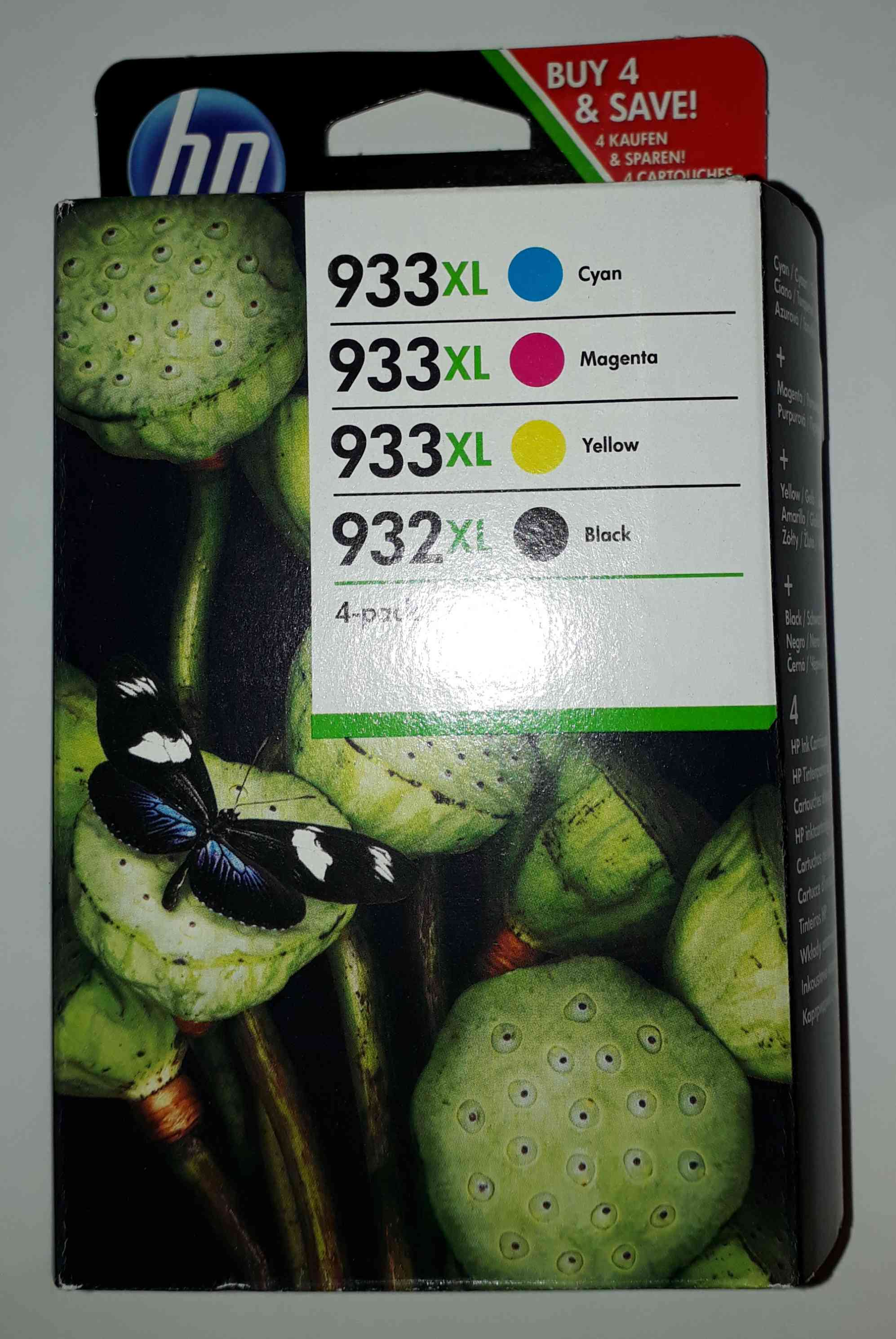 3 kleuren inkt (HP 933xl) en één zwart (HP 932xl) orgineel product. (werden samen aangekocht en worden ook samen in één lot aangeboden)