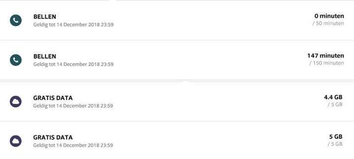 • Je hebt nu 2 bundels van 5GB, een bundel van 50 belminuten en een bundel van 150 belminuten.