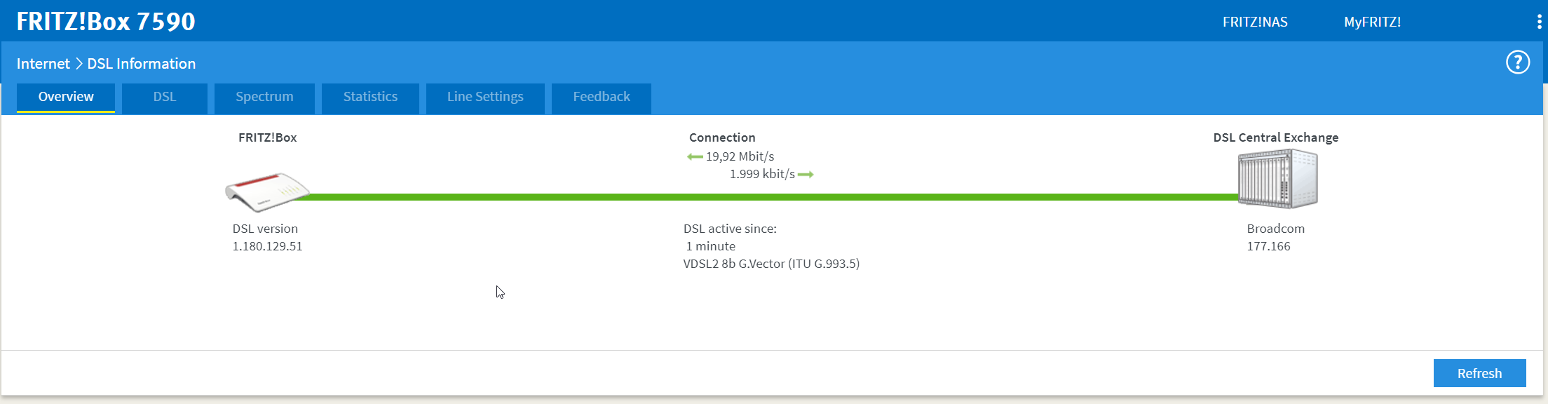 Ik zit volgens de nieuwe DSL debug pagina op een 500 meter van de centrale.