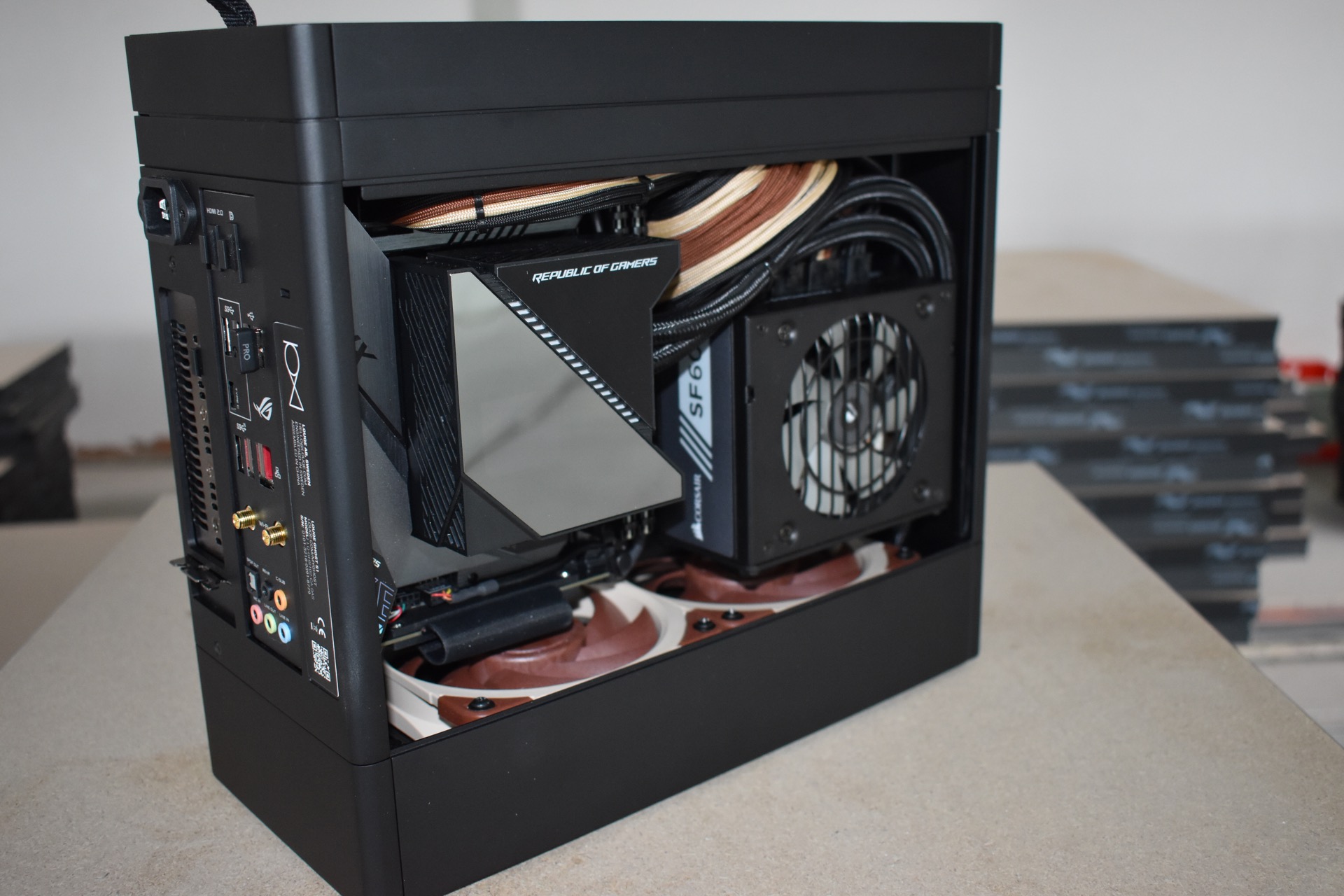 Nieuwe layout in m'n nieuwe SFF case (AIO radiator vanonder en 2x 120mm exhaust fans bovenaan)