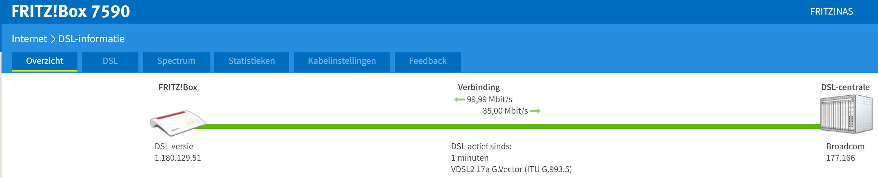 Sinds gisteren na een week op profiel 30/10 beland op 85/30. Merk wel dat de werkelijke snelheid gemeten via fast.com zo'n 10 mbit lager ligt. Hebben anderen dit ook? Gebruik een fritzbox 7530. Hopelijk zit er nog wat rek in, afwachten.