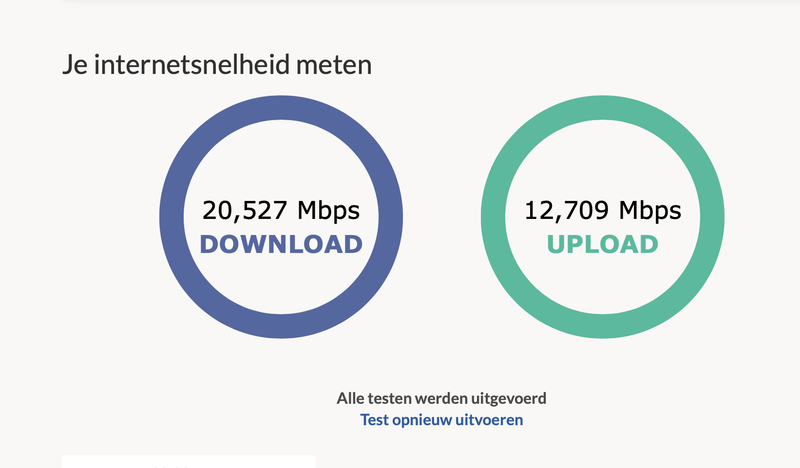 Zojuist nog eens een verse speedtest gedaan. Via desktop, ethernet.