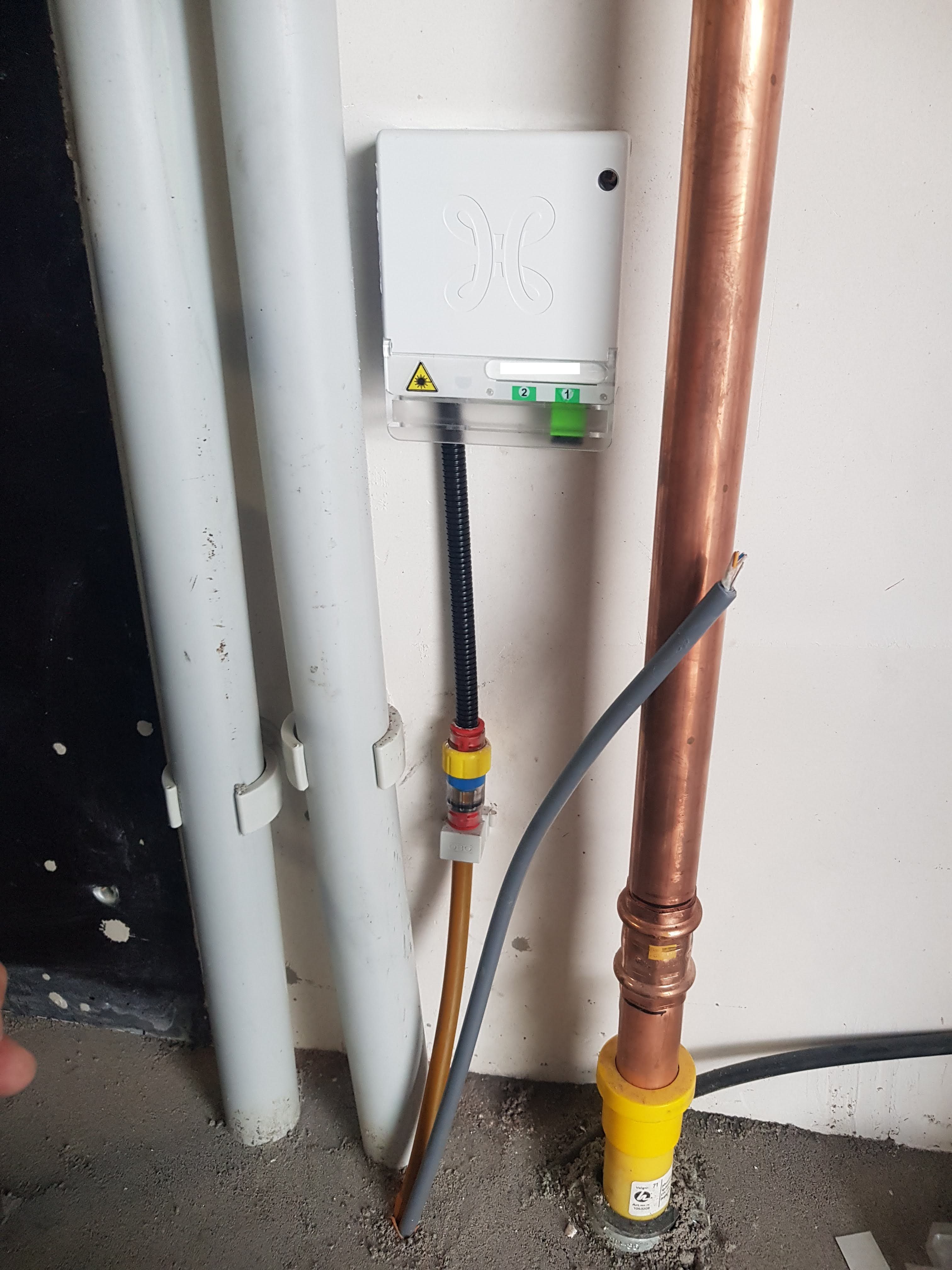 Tja, als de eigenaar z'n nutsvoorzieningen op privé-domein niet deftig voorbereid, gaat Proximus ook geen onnodige kosten maken op privéterrein.lacer schreef:Ik zie op je foto dat de fiber en telefoonkabel onbeschermd uit de grond komen.