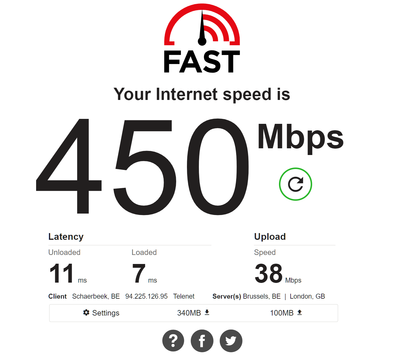 Het schommelt tussen 400 en 450 Mbps. De grote netwerf is hier wel enkele maanden geleden gepasseerd. Is toch OK?