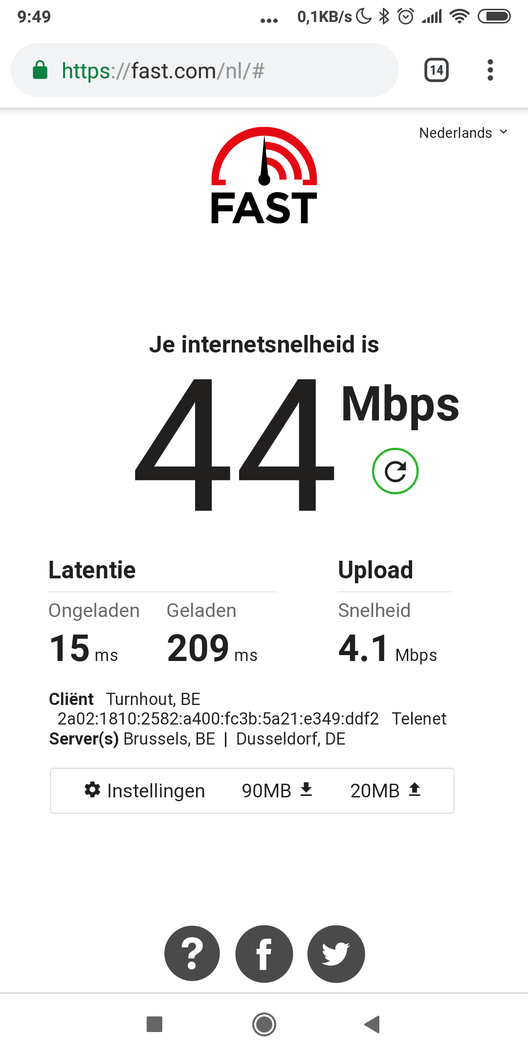 Update: de foto is van rond de middag heb deze avond ook nog eens getest om 22:10 en haal 746ms geladen en download van 68Mbps.