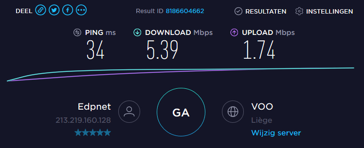 B-BOX 3V+ opnieuw aangesloten en surfen we maar verder aan 5Mbps. Onvoorstelbaar deze toestand. Heb al spijt dat ik ben overgestapt. :bang: