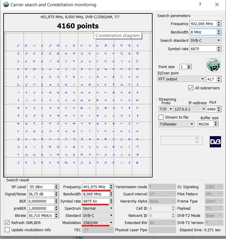 Manueel scannen levert ook niets op. Wanneer ik bij manueel scannen 402000 ingeef bij de frequentie komt hij zeggen dat er geen signaal is. Ik heb even gezocht en de LG verliest blijkbaar het signaal boven de 371120 frequentie. Alles daaronder geeft aan dat er nog een signaal is. Alles erboven zegt hij dat er geen signaal meer is.