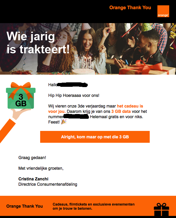 Orange doet dit indd zeker als je 5j klant bent doen ze regelmatig wel is iets leuks kan je bvb cadeau kiezen enz