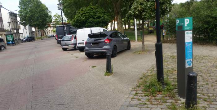 Met die klinkers in verschillende kleuren, net zoals op de plaatsen waar wél een afbakening is? Dit is op zijn minst onduidelijk, ik zou er misschien ook wel geparkeerd hebben als ik daar een plaatsje zag.philippe_d schreef:En bij gebrek aan vakken, had je daar zeker niet schuin mogen parkeren.