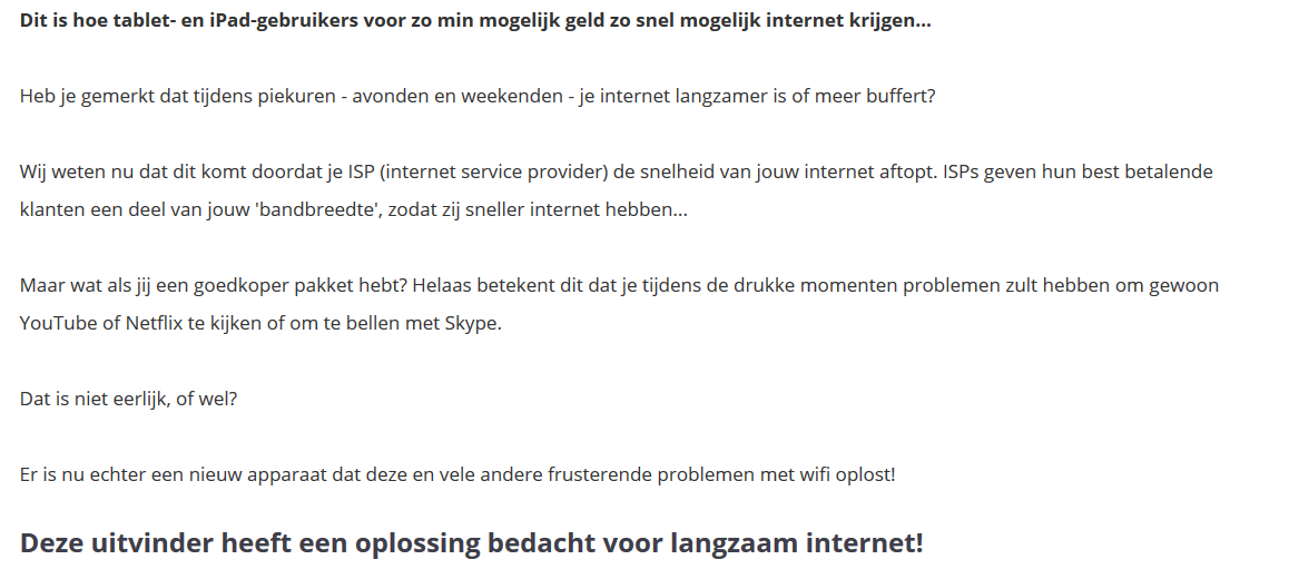 Een beetje zoals de Wifi-prul reclame waar het hier over gaat dus