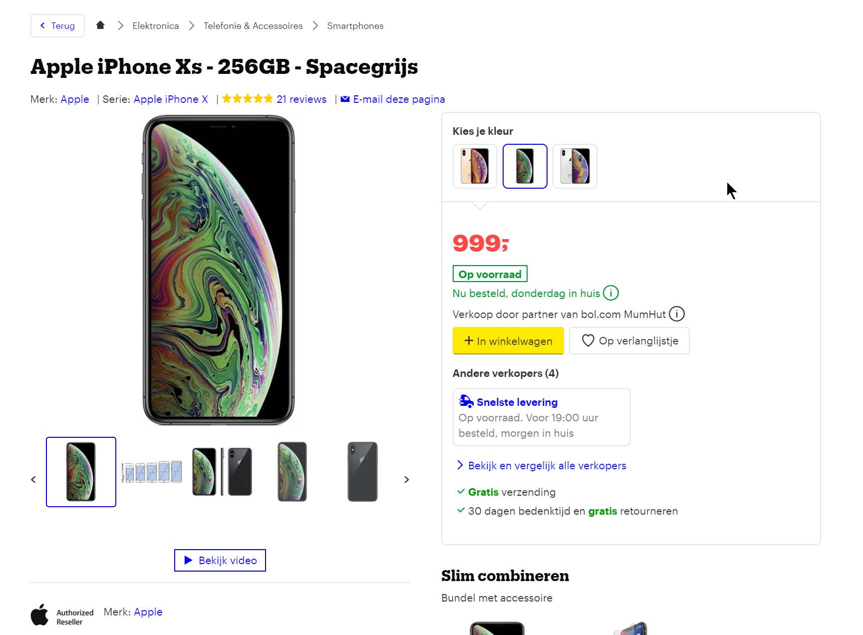 Lijkt me maar iets louche eigenlijk, die verkoper mumhut. Verkopen tuinmateriaal, hebben geen beoordelingen op bol.com en nu verkopen ze een iPhone XS 256GB voor minder dan 1000 EUR?