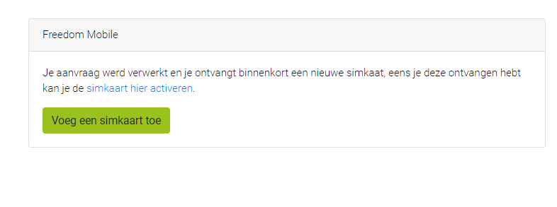 Als ik nu aanlog krijg ik volgend scherm te zien : En als ik op de link klik krijg ik ook bericht dat de activatie succesvol gestart is, en het tot 24 uur kan duren voor de sim kaart volledig opartioneel is, en dat er eventueel meerdere keren moet herstart worden.