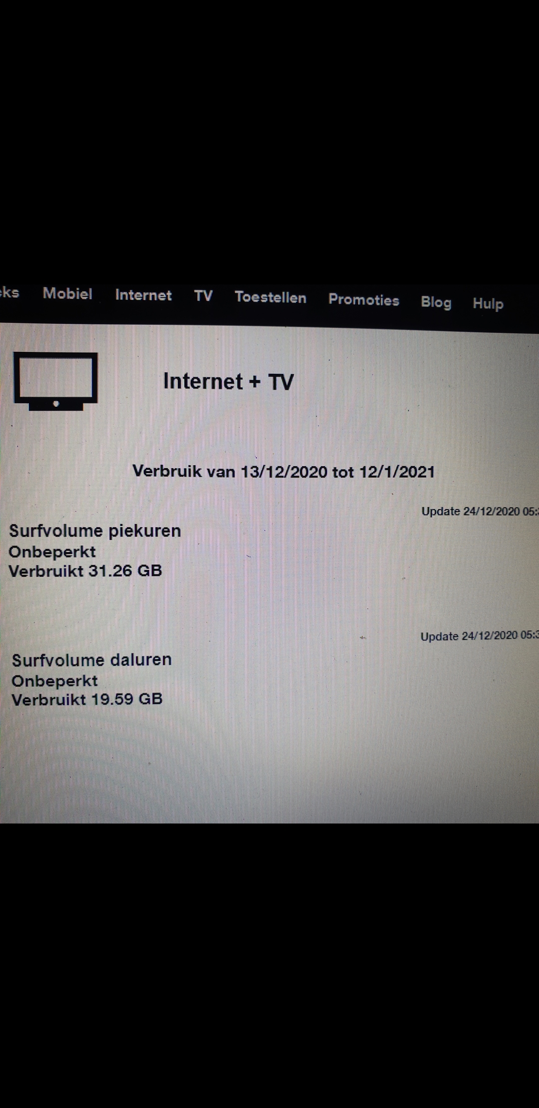 Het zelf bijhouden is een beetje lastig met meerdere aparaten, ik heb een laptop, een werkpc, een Android TV Box, een Androidtelefoon en een tablet. Ik verwacht niet snel tegen de limiet aan te lopen (gaat vooral om Youtube, Netflix maar grote bestanden downloaden doe ik verder niet), maar ik zou het ook wel graag kunnen controleren. Dan is het bij te sturen ipv dat je toch opeens op smallband komt.