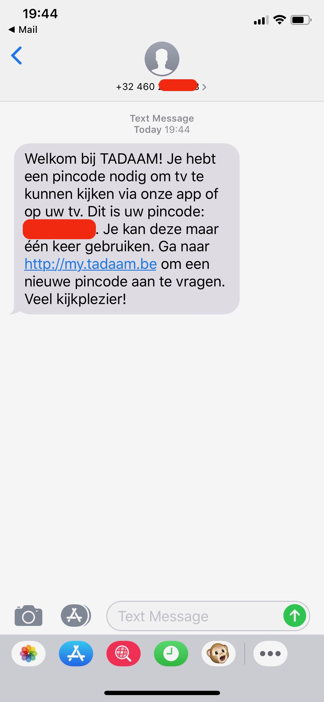 - ik kreeg dan onmiddellijk na het verbinden een SMS met een code in, deze had ik niet echt nodig omdat ik m'n account al aangemaakt had.