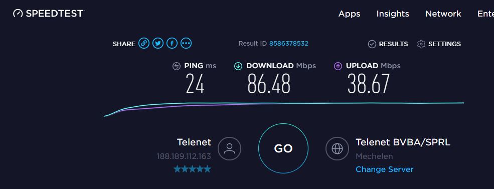 We merken niet echt betekenisvolle verschillen in internetsnelheden voor normale browsing te doen op laptop of gsm.