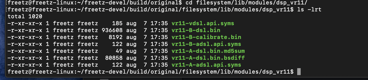 - de drivers zitten in de directory filesystem/lib/modules/dsp_vr11 ; je moet alle bestanden vervangen