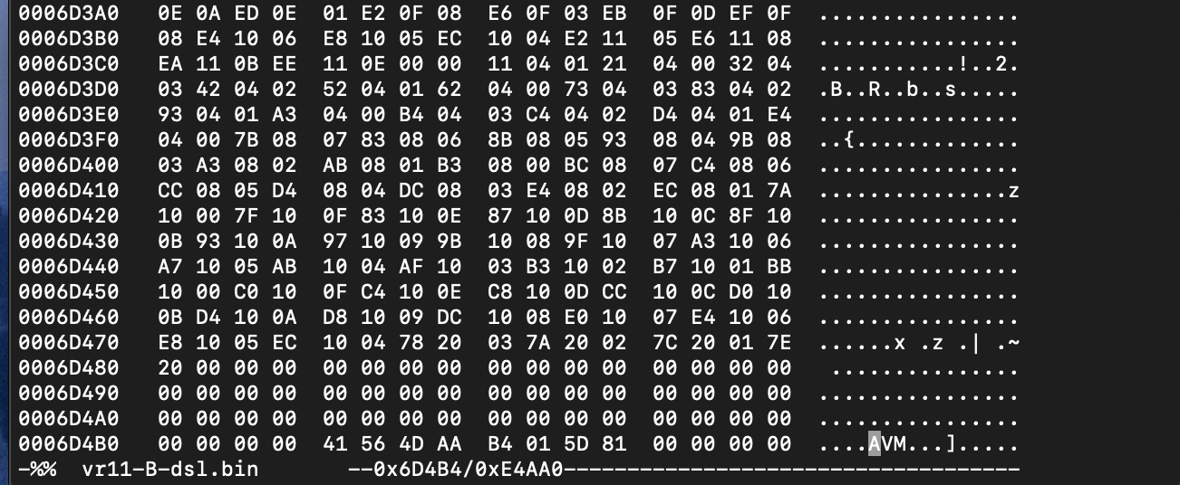 Gebruik "hexedit" om 1 byte aan te passen in vr11-B-dsl.bin. De sequence "B4 01 5d 81" moet je veranderen in "B4 01 33 81".