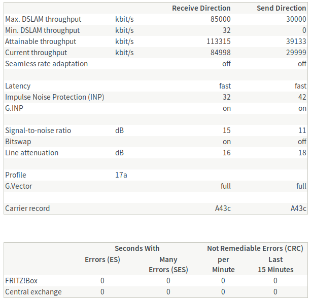 Na 20 uur nog steeds geen fallback, dat is al geruststellend. Max attainable throughput is beetje gezakt.